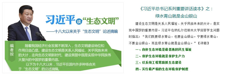 “我們既要綠水青山,也要金山銀山。寧要綠水青山,不要金山銀山,而且綠水青山就是金山銀山?!边@生動形象表達(dá)了我們黨和政府大力推進(jìn)生態(tài)文明建設(shè)的鮮明態(tài)度和堅(jiān)定決心。要按照尊重自然、順應(yīng)自然、保護(hù)自然的理念,貫徹節(jié)約資源和保護(hù)環(huán)境的基本國策,把生態(tài)文明建設(shè)融入經(jīng)濟(jì)建設(shè)、政治建設(shè)、文化建設(shè)、社會建設(shè)各方面和全過程,建設(shè)美麗中國,努力走向社會主義生態(tài)文明新時代。